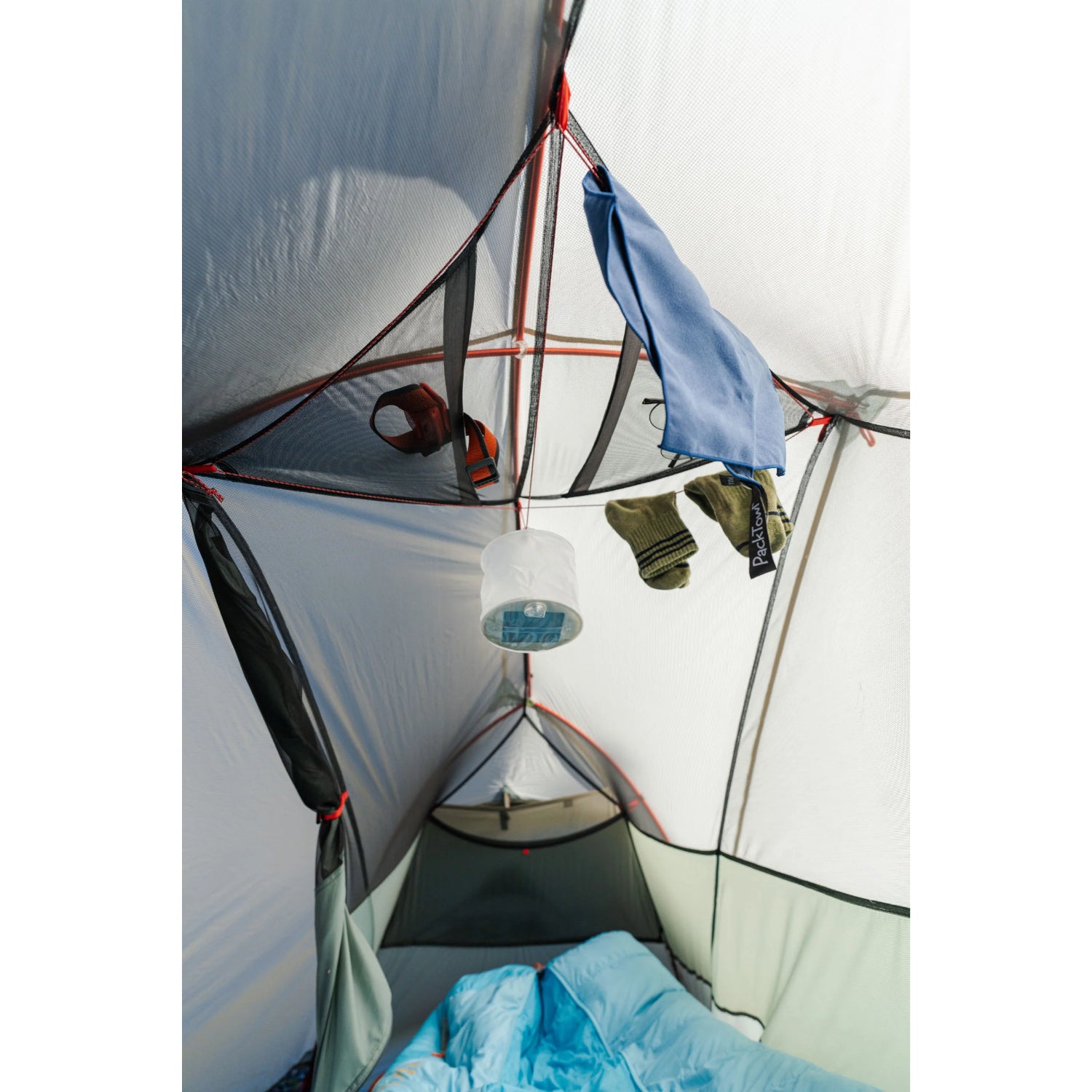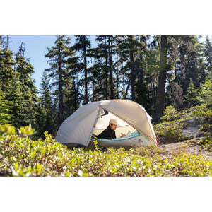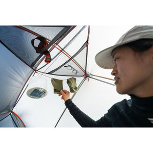 The Inside: The interior is a roomy 20 sq. feet with no taper to accommodate a modern rectangular sleeping pad. The tent body is solution-dyed micromesh for exceptional breathability and bug protection, perfect for stargazing on clear nights. The no-curve tent door features zippers that are easy to use with one hand. They also zip closed to a single point so you always know where to open the door, even in the dark. Tech-friendly pockets feature cable ports at the corners for headphones and charging cords. A large overhead gear loft pocket is perfect for a headlamp, sunglasses and other quick-access items, and an included clothesline lets you dry out damp clothes.