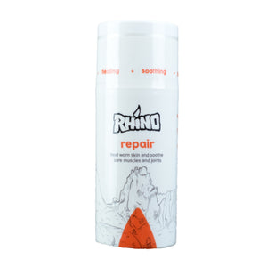 Rhino Skin Solutions Repair is a non-greasy skin conditioner designed to heal dry, swollen  and abused hands and feet. Highlights: pain relieving ingredients. Apply liberally after climbing.