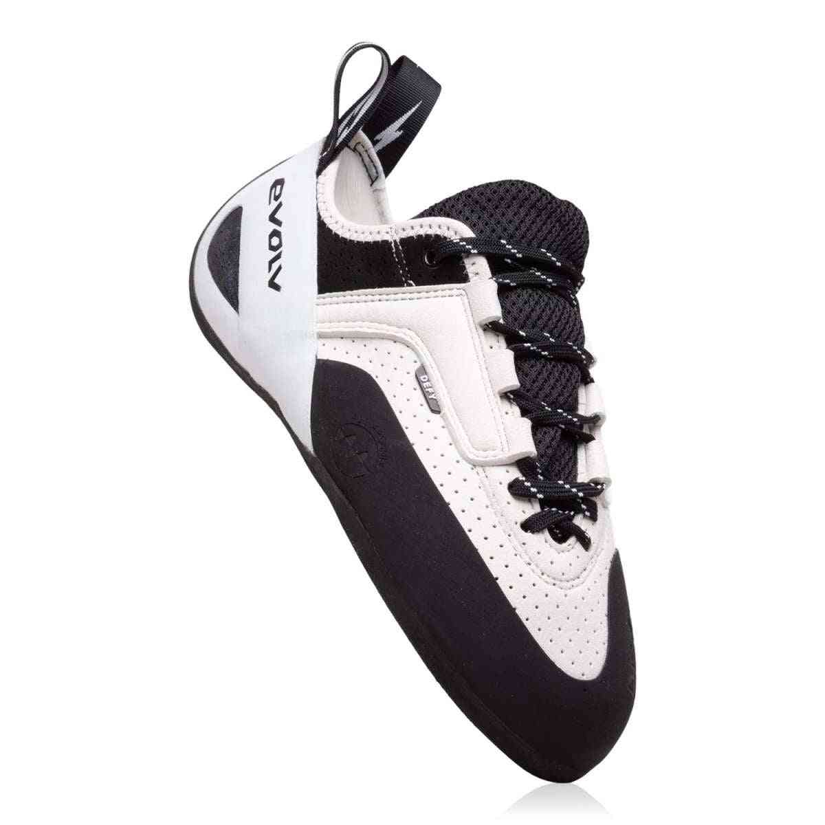 The 2025 Defy Lace returns with everything climbers have come to expect from an entry level shoe from Evolv - comfort, durability, and technical features that elevate the Defy far beyond its 'entry level' shoe status. Slightly more cambered and asymmetrical than traditional entry level shoes, the Defy Lace instills precise, confident movement from your very first climb. Now with a slightly thinner 3.5mm outsole, the new Defy range feels sensitive and in touch with every foothold from the get go.