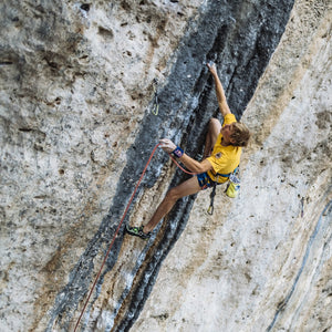The widest fitting technical shoe in the Tenaya range, with its moderately downturned shape and curved last, the Mundaka excels on overhangs and vertical terrain alike. The split sole construction enhances flexibility and sensitivity, allowing you to feel every foothold while maintaining the support needed for small edges and micro-features. Tenaya’s SXR Dynamics system provides a secure, sock-like fit that adapts to your foot, delivering control without painful pressure points.