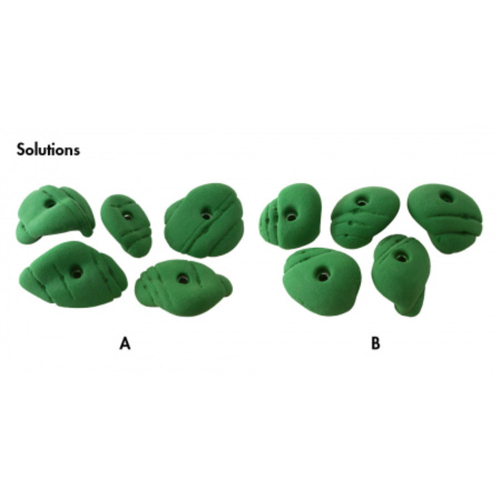 NB: Each image details the 5 holds in the A set (left hand side) and the 2 holds in the B set (right hand side)