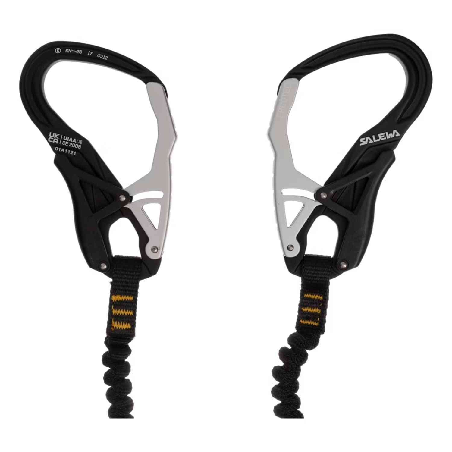 The abrasion-resistant, elasticated webbing lanyards keep your setup close to your body for streamlined movement, reducing snagging and improving control. With a reinforced steel gate and a built-in rest loop, this set is made for those who push their limits in alpine environments.